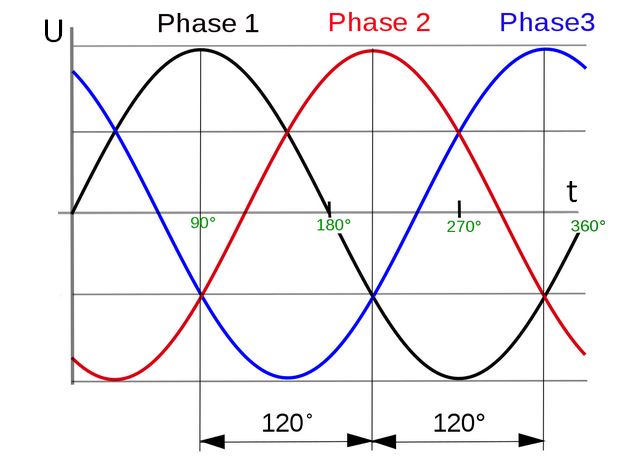 В какой-то момент времени фаза бывает больше по напряжению, чем ноль. В какой-то момент времени она становится равна нулю. А в какой-то момент времени становится меньше чем ноль. Или, иначе говоря, ноль становится больше по напряжению, чем фаза). Потом фаза снова становится равна нулю, а потом снова больше нуля и все это повторяется до тех пор, пока работает генератор на электростанции.
