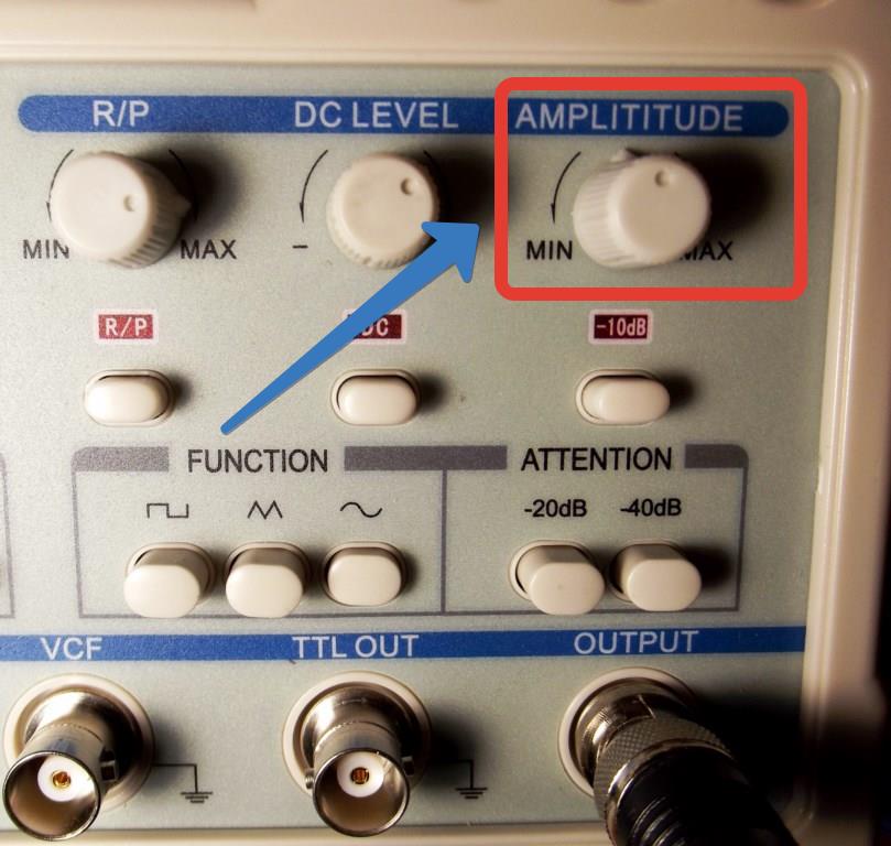 На лицевой панели генератора частот мы видим множество различных кнопок и крутилок. Эта крутилка предназначена для того, чтобы уменьшать или увеличивать амплитуду сигнала.
