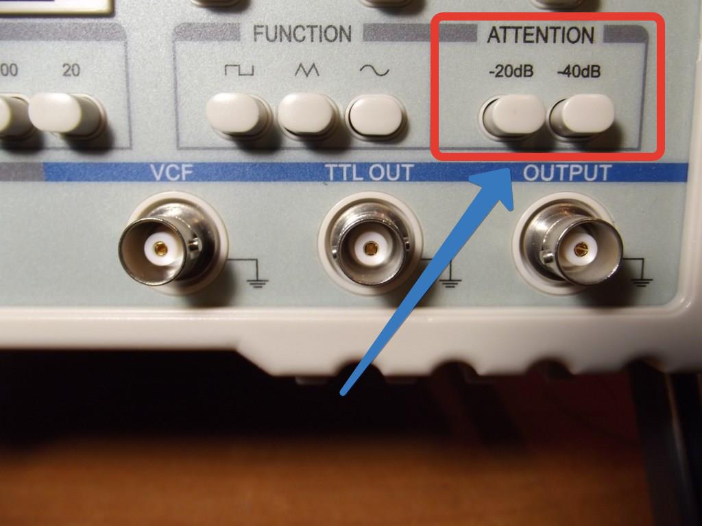 Написано “attention”, что значит “внимание”. На самом деле там должно быть написано “attenuator”. Аттенюатор – слово не наше, означает как “ослабить, смягчить”. Видать, китайцы сэкономили на переводчике с китайского на английский ). Итак, что за кнопочки -20dB и -40dB? dB – это децибелы. А пока вот вам ссылочка на онлайн-калькулятор. Я за вас уже все посчитал. -20dB это значит, что мы можем ослабить выдаваемый генератором сигнал в 10 раз. -40dB – в 100 раз. А если нажмем сразу на 2 кнопочки разом, то у нас в сумме получится -60dB. Следовательно, мы можем ослабить сигнал в 1000 раз.
