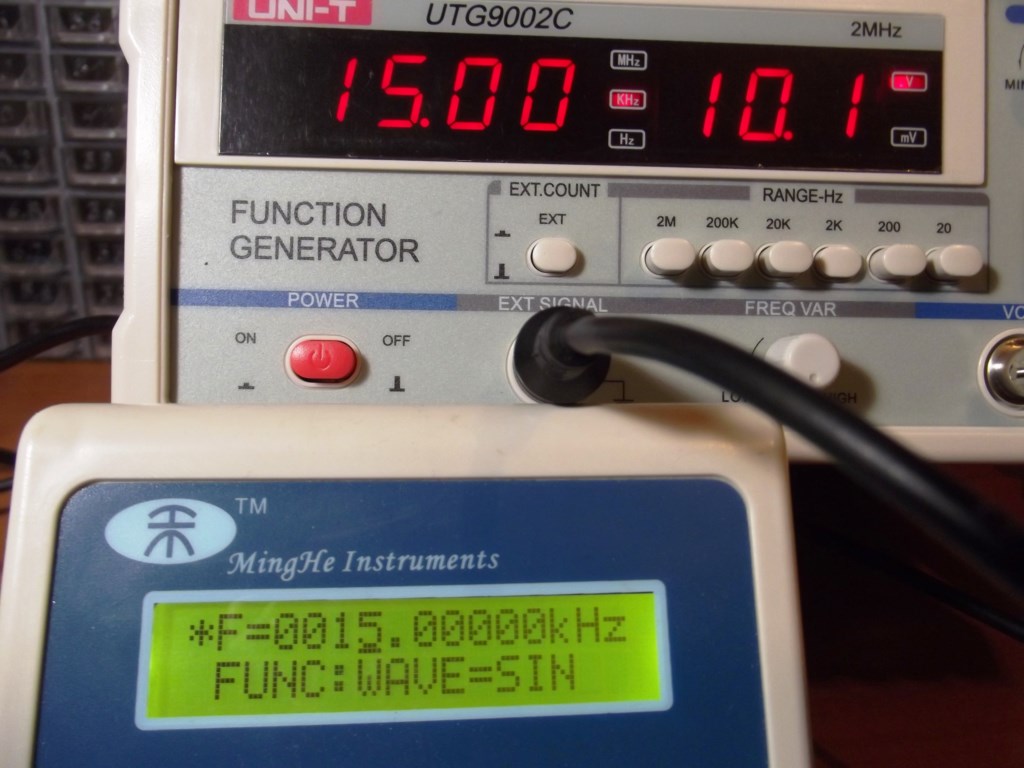 А также мы без проблем можем замерить этим генератором частот какую-либо частоту, например, с другого генератора. Выставили 15 КГц, он нам тоже показал 15 КГц. Все работает как надо!