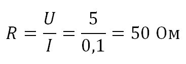 Рассчитать сопротивление проводника, если известно, что на него подают напряжение 5 Вольт и сила тока, проходящая через него 0,1 Ампер.