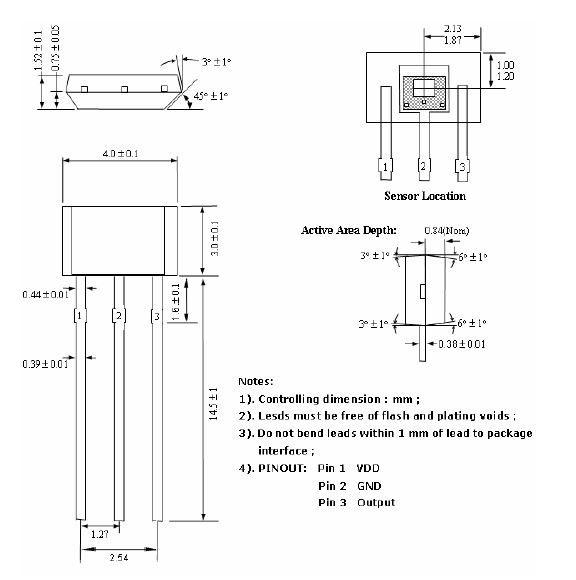 Судя по даташиту, на первую ножку подаем плюс питания, на вторую — минус, а с третьей ножки уже снимаем сигнал логической единицы или нуля.