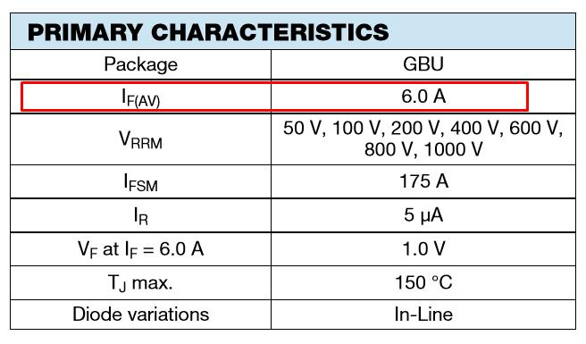 Чтобы далеко не ходить, давайте рассмотрим диодный мост GBU6K и рассмотрим на его примере, как читать характеристики.