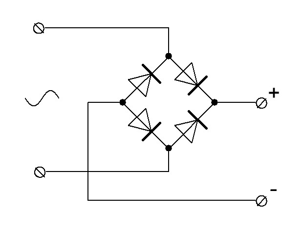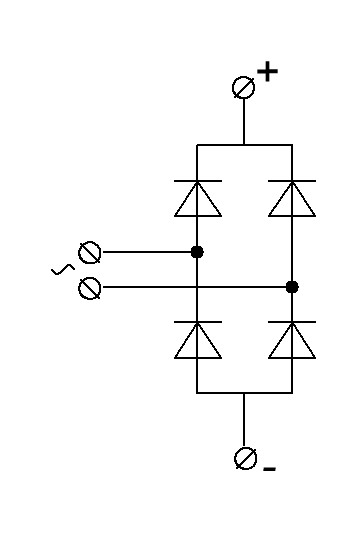 Эта рисунок также является самой распространенным обозначением диодного моста на электрических схемах.