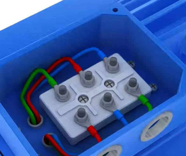 В клеммной коробке двигателя это соединение будет иметь такой вид.