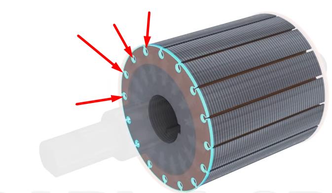 Как вы можете далее заметить, в сердечнике ротора есть специальные пазы