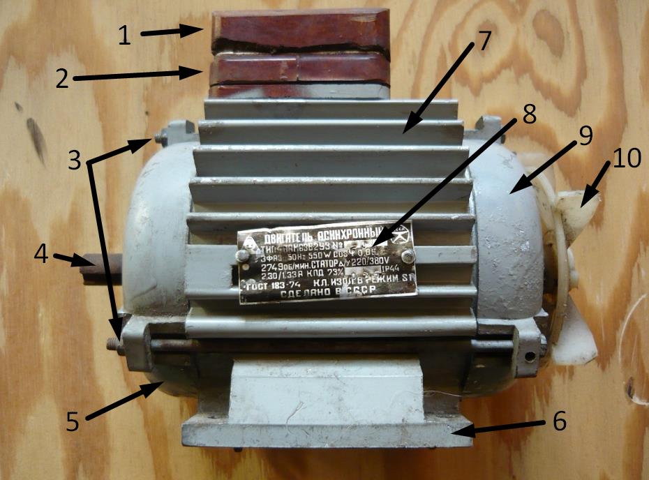 Все 6 концов обмоточных проводов выведены в клеммную коробку, которая находится на корпусе двигателя.