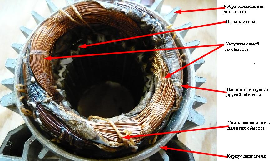 Реальное фото статора одного из асинхронного двигателя выглядит вот так.