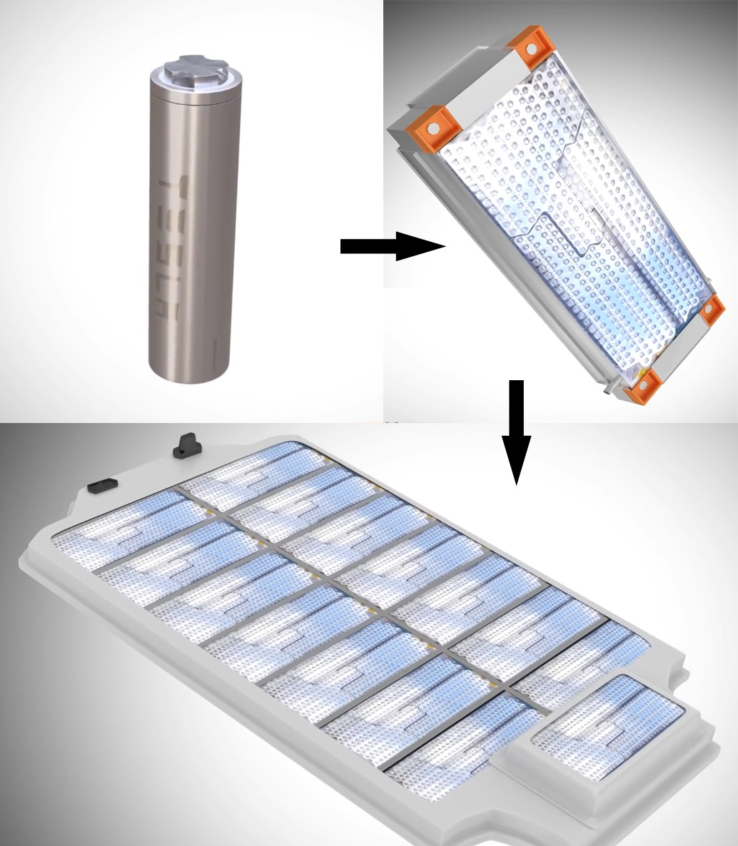 У конструкции с множеством маленьких цилиндрических элементов есть и еще одно преимущество: при большом расходе энергии нагрузка распределяется равномерно между всеми элементами. Если бы вместо множества маленьких элементов был один огромный элемент, из-за постоянных нагрузок он очень быстро бы пришел в негодность. Tesla сделала ставку на маленькие цилиндрические элементы, технология производства которых уже хорошо отработана. Более подробно про батарейный модуль Тесла читайте в этой статье.