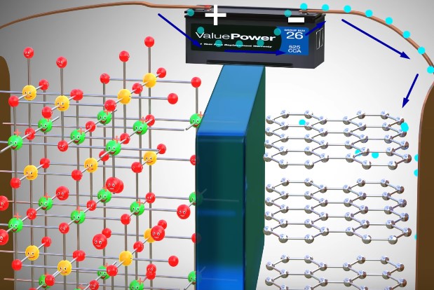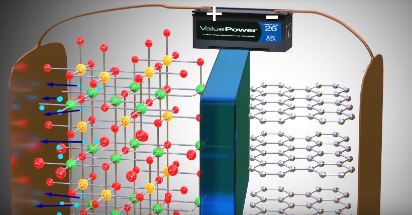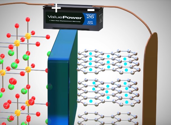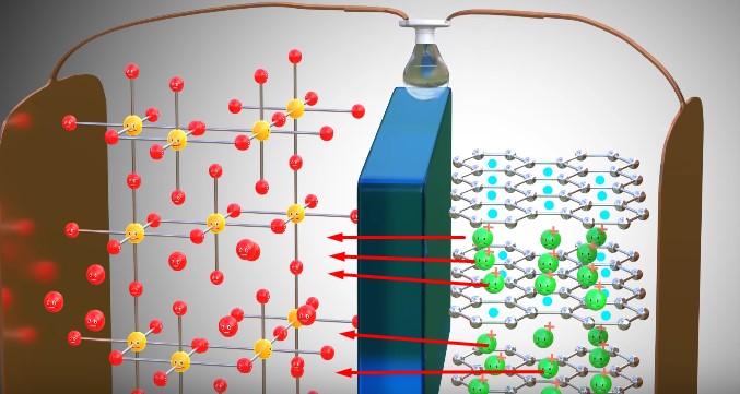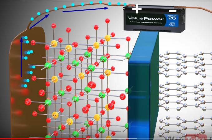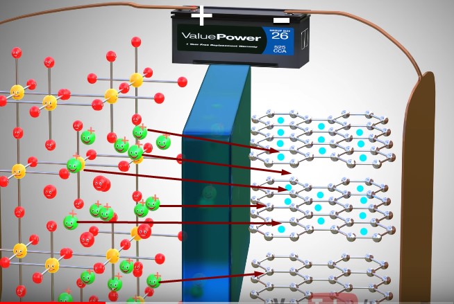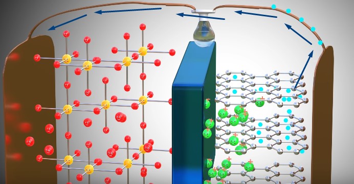 Когда все ионы лития достигнут графита и будут «захвачены» его слоями, батарея будет полностью заряжена.