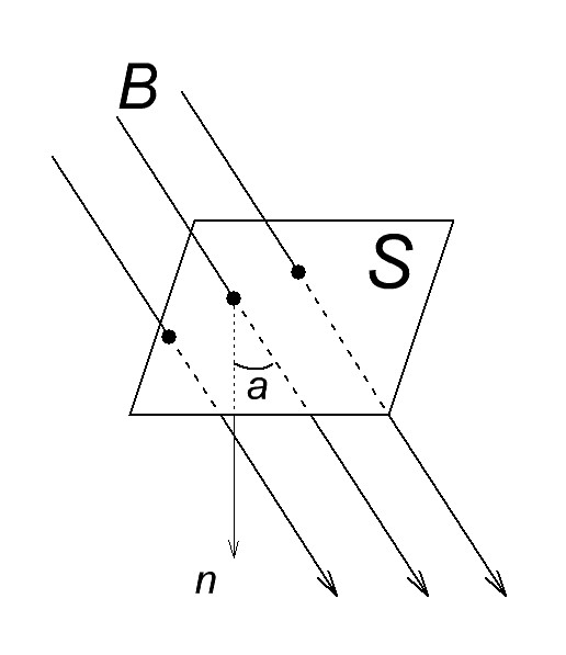 а — угол между перпендикуляром n (чаще его зовут нормалью) и плоскостью S, в градусах