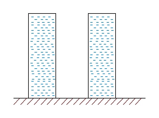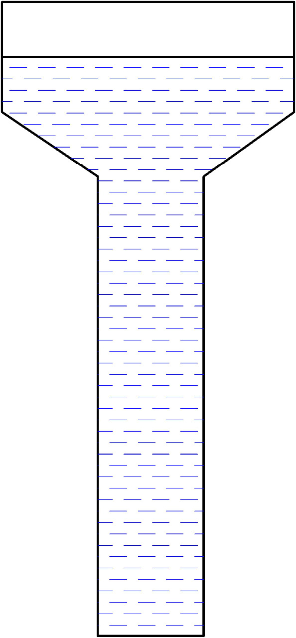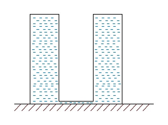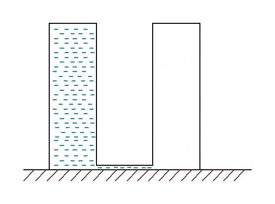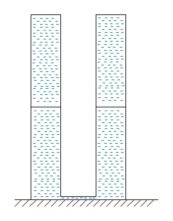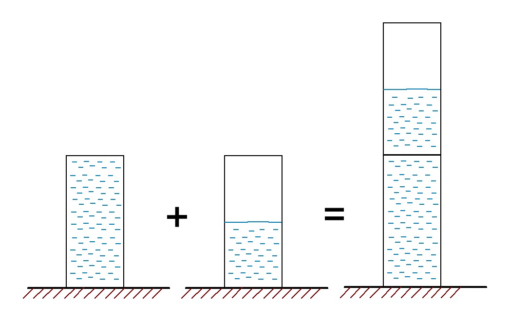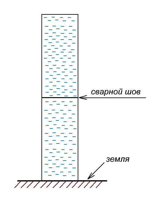 Теперь давайте представим вот такую ситуацию. Что будет, если в нашей обрезанной водобашне полной воды добавим еще одну такую же сверху полную воды? Схематически это будет выглядеть примерно вот так: