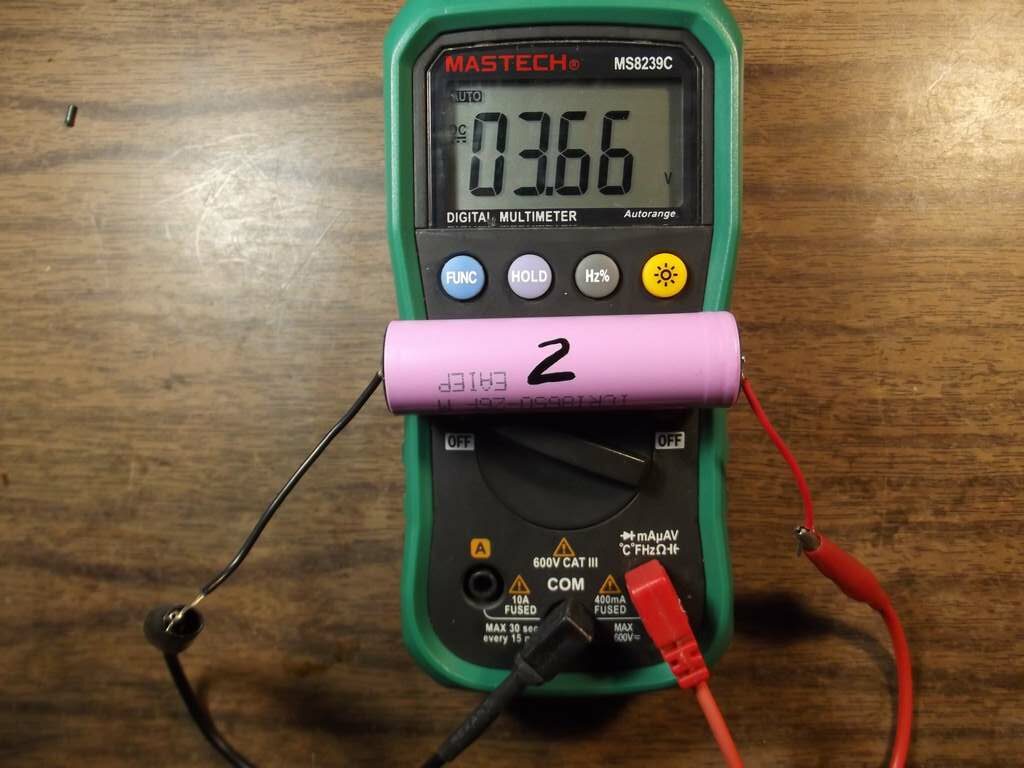 На первом аккумуляторе у нас напряжение 3,66 Вольт. Это типичное значение литий-ионного аккумулятора.