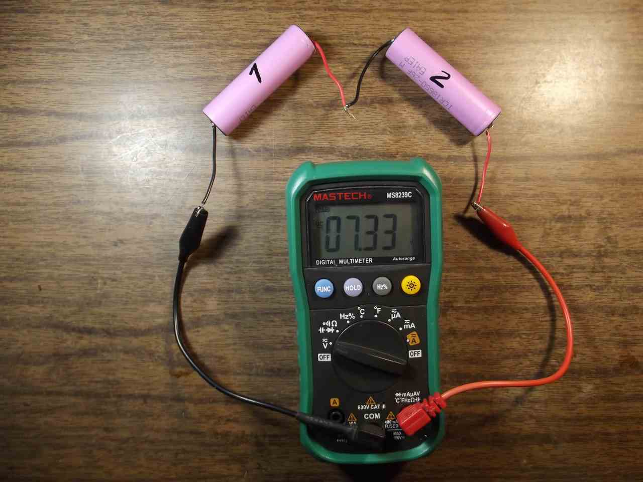 Настало время все это рассмотреть на реальном примере. Итак, замеры мы уже делали. Осталось соединить два источника питания параллельно, в нашем случае это аккумуляторы li-ion: